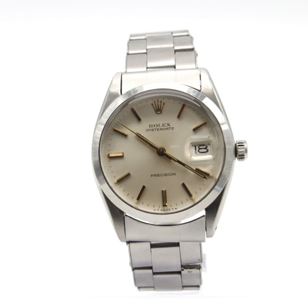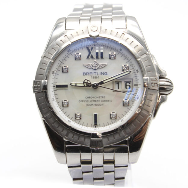 Dial: black dial silver hands and diamond hour markers