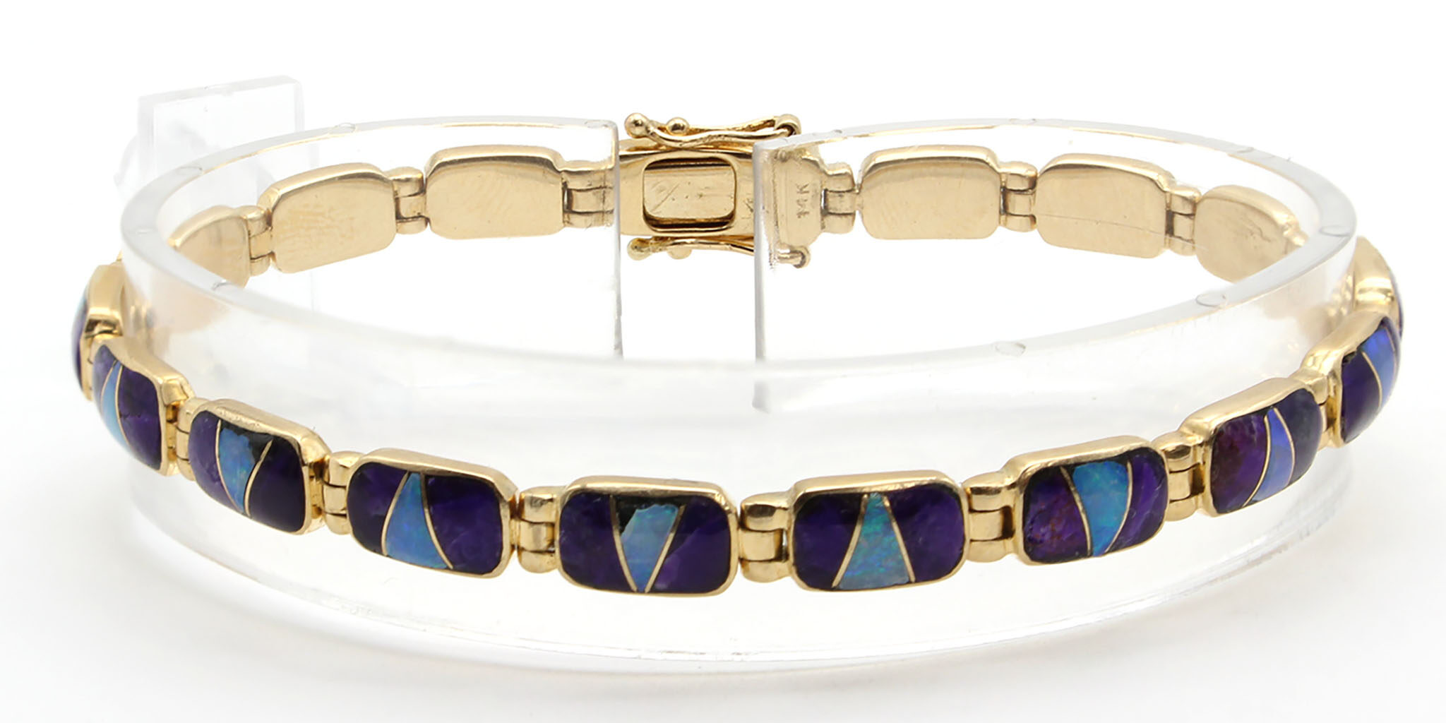 14k Yellow Gold Sugilite and Opal Inlay Bracelet