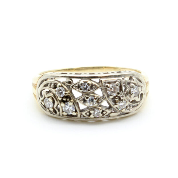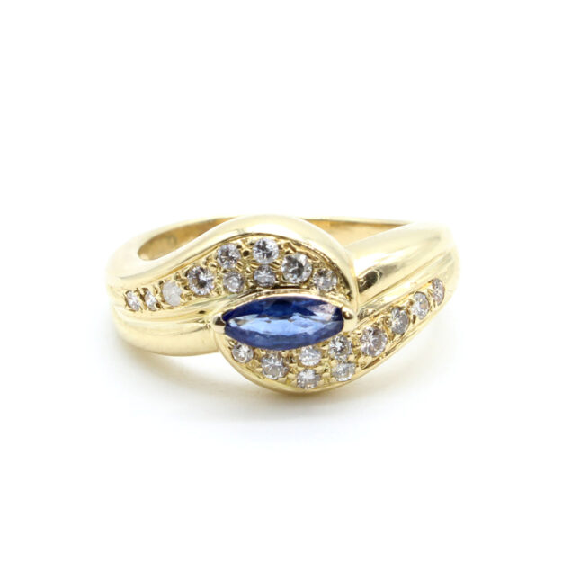 14k Yellow Gold Blue Sapphire and Diamond Ring