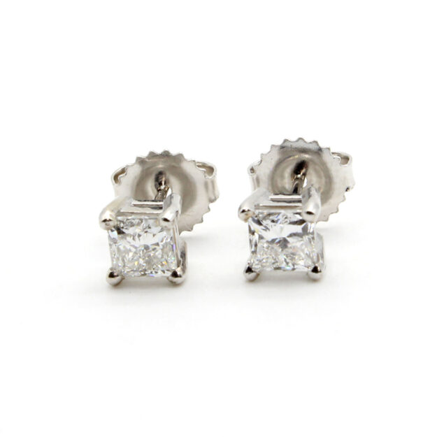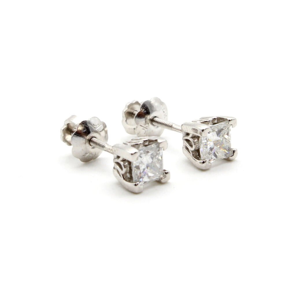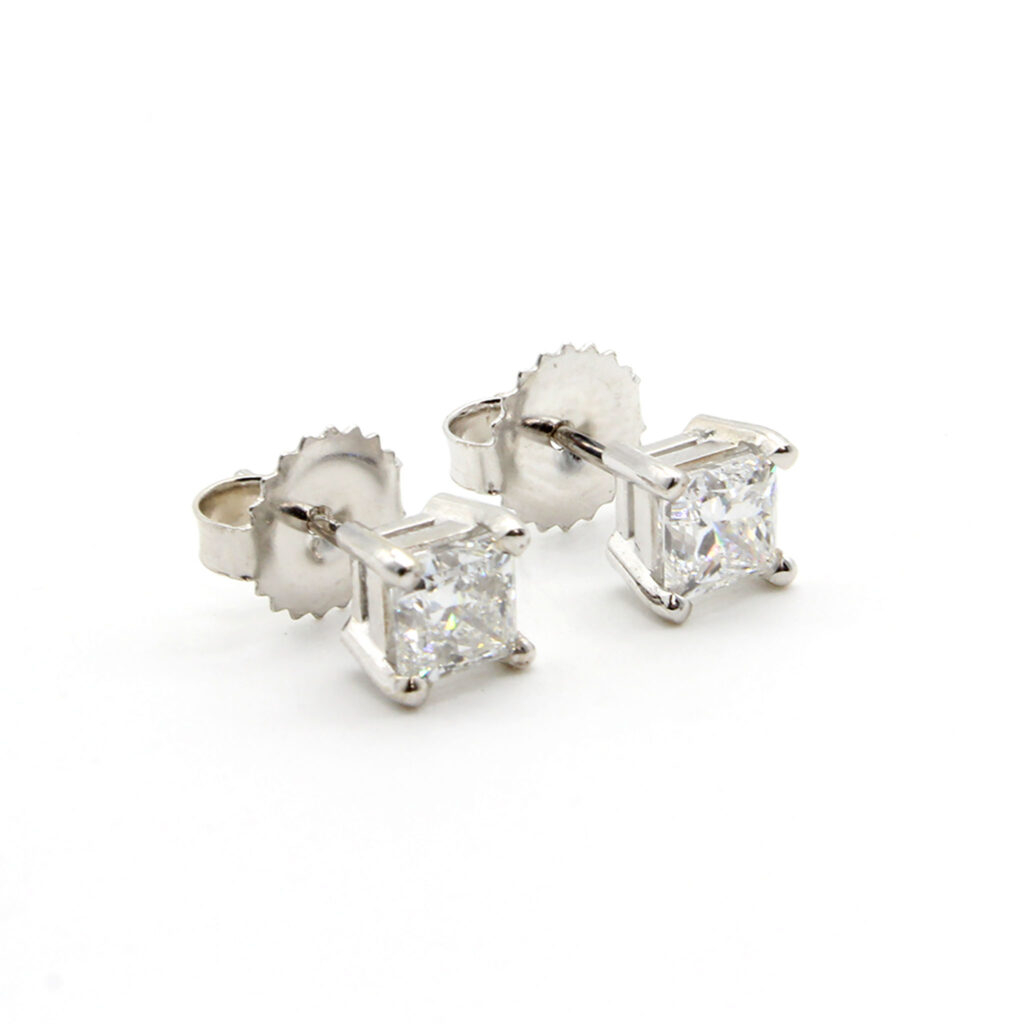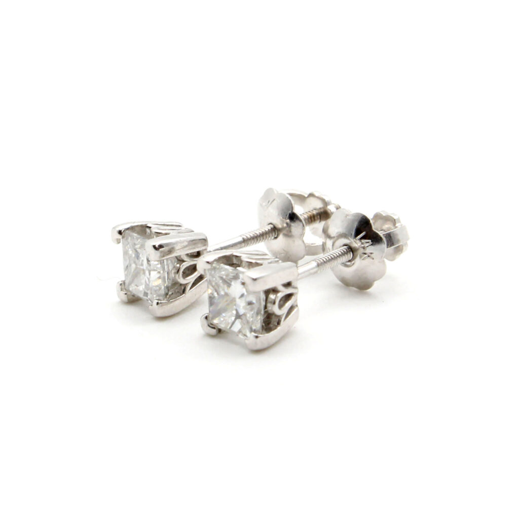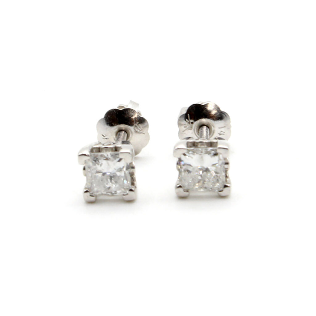 14k White Gold 0.50cttw Princess Cut Diamond Stud Earrings