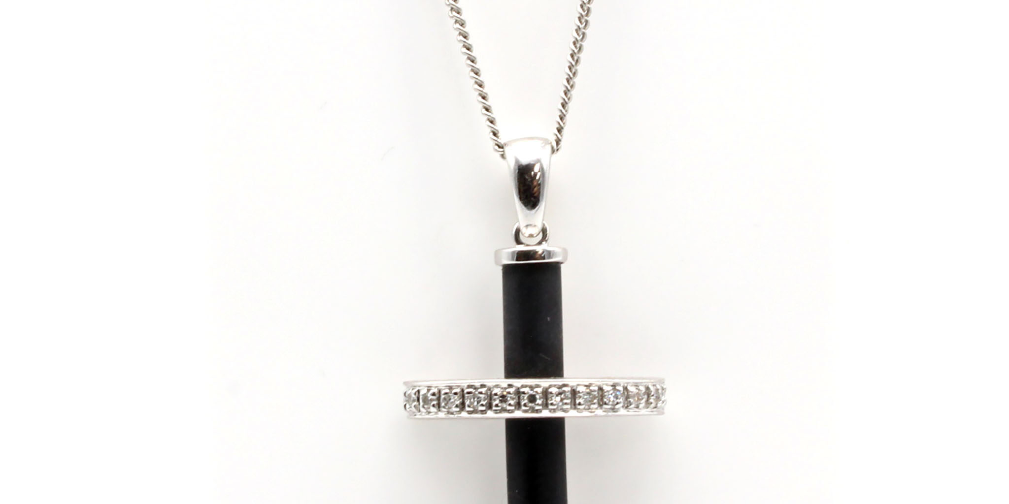 Material: 14k white gold and rubber