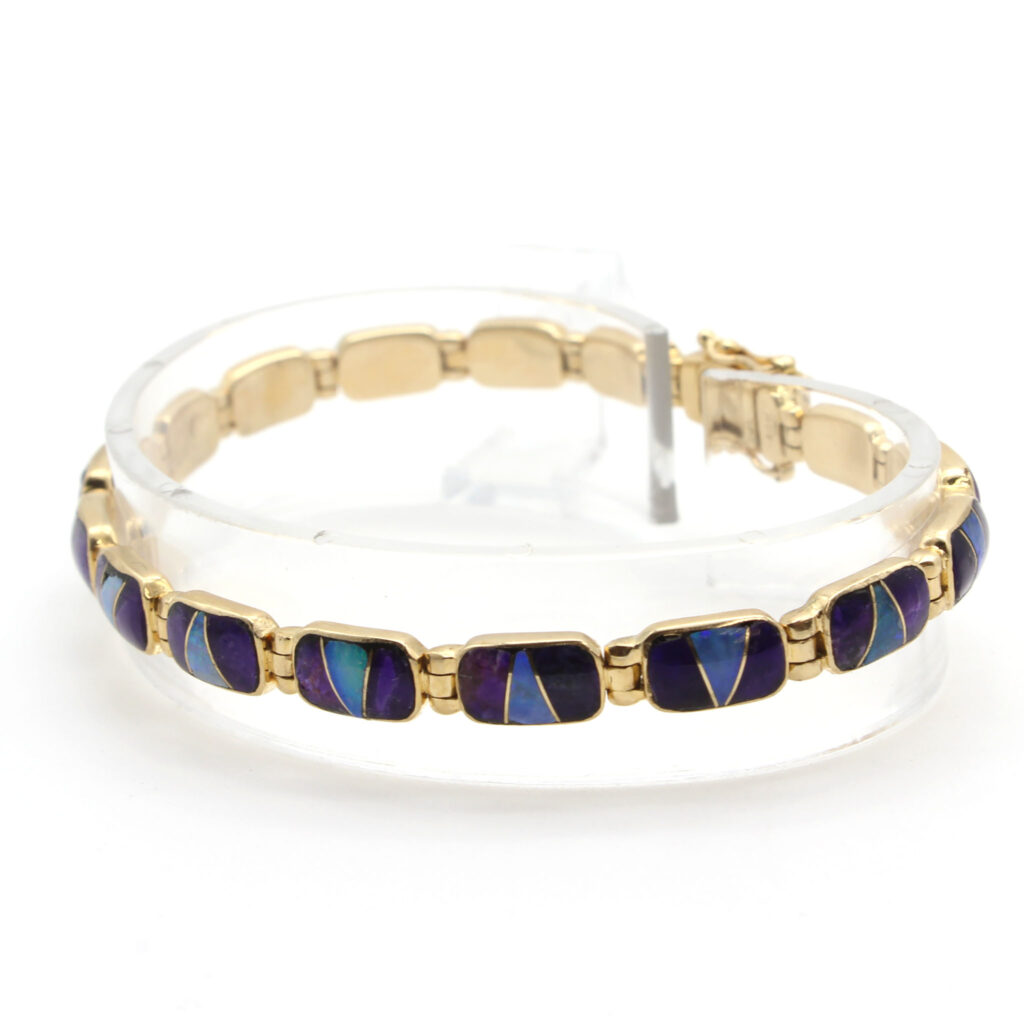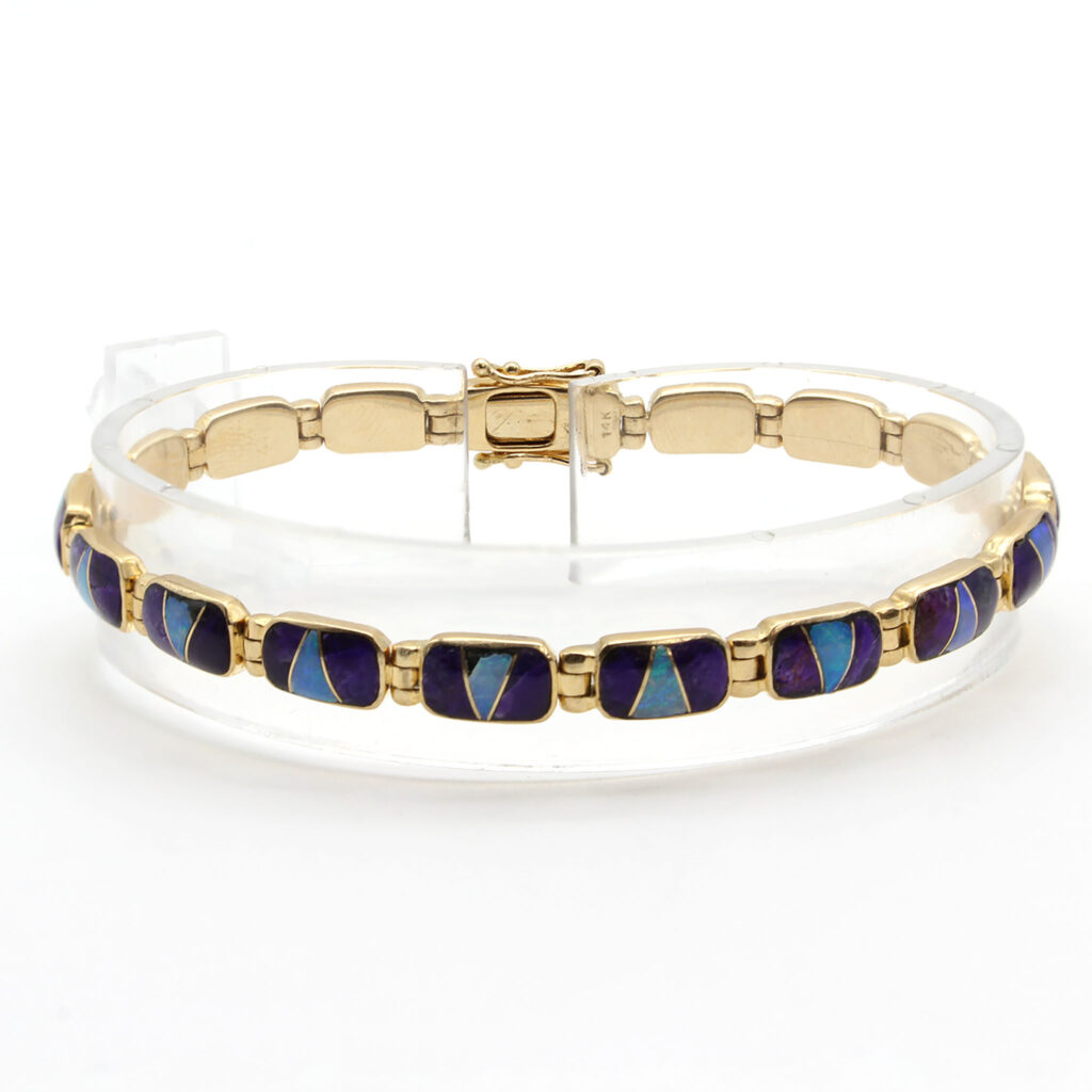 14k Yellow Gold Sugilite and Opal Inlay Bracelet