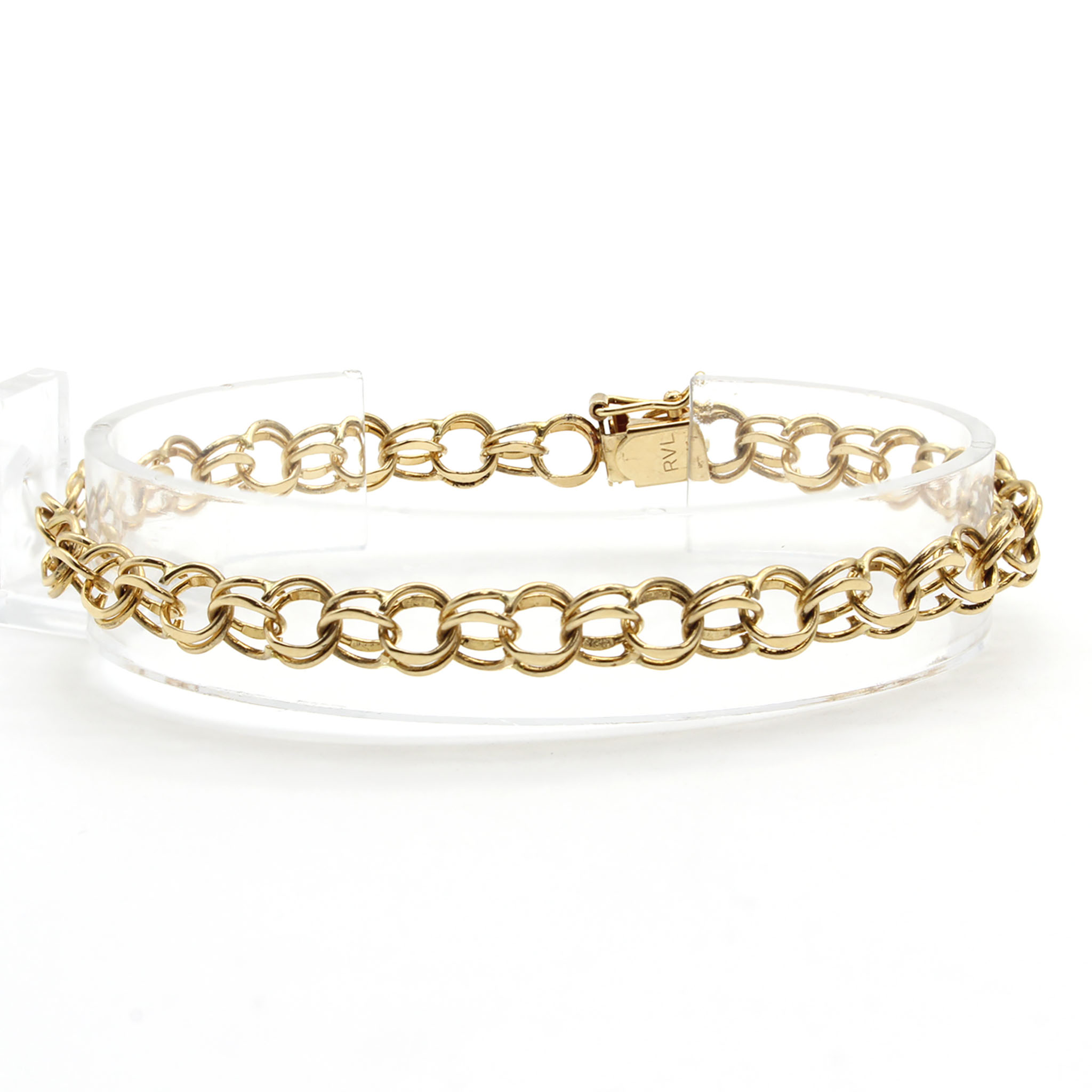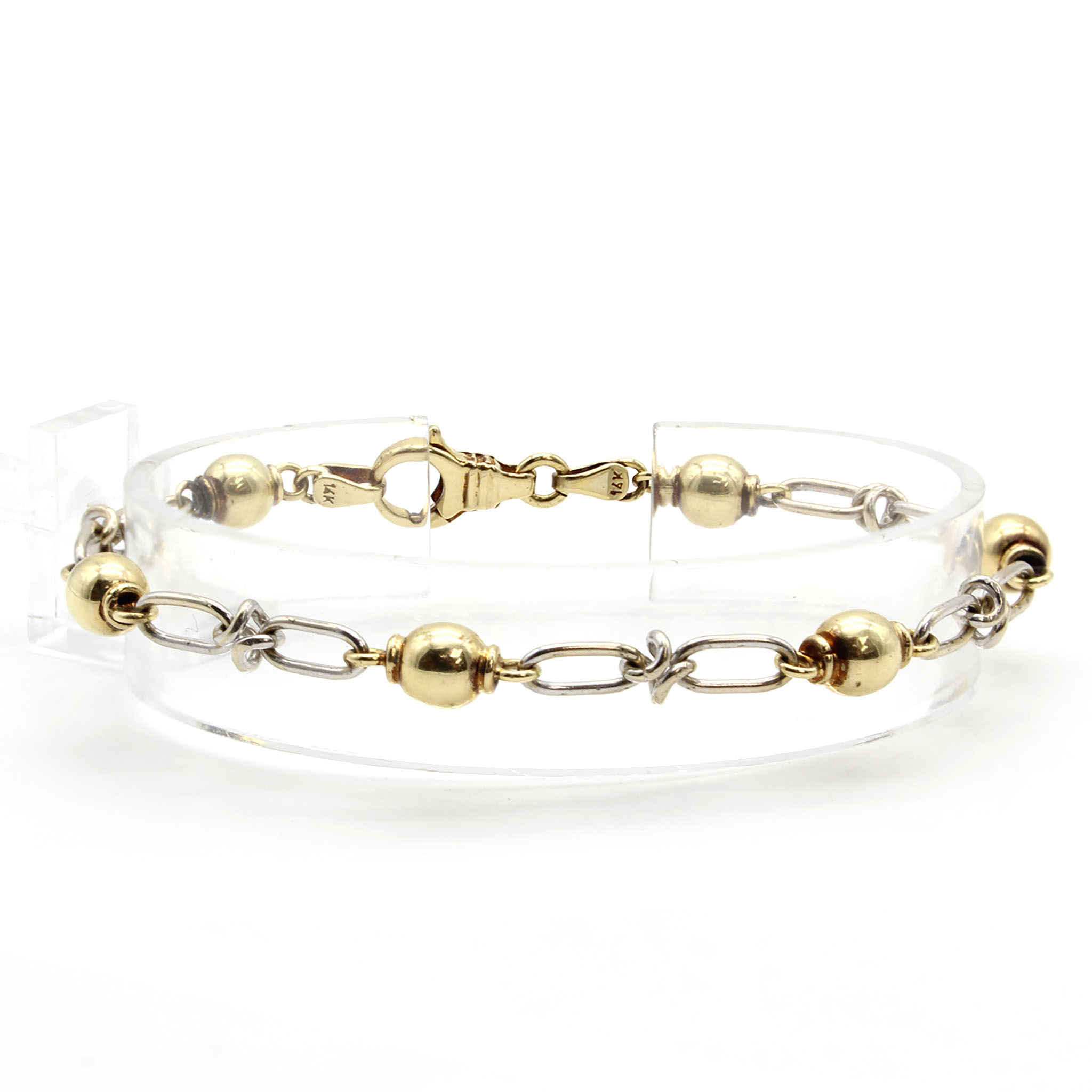 14k Two Tone Fancy Link Bracelet 7.5 Inches